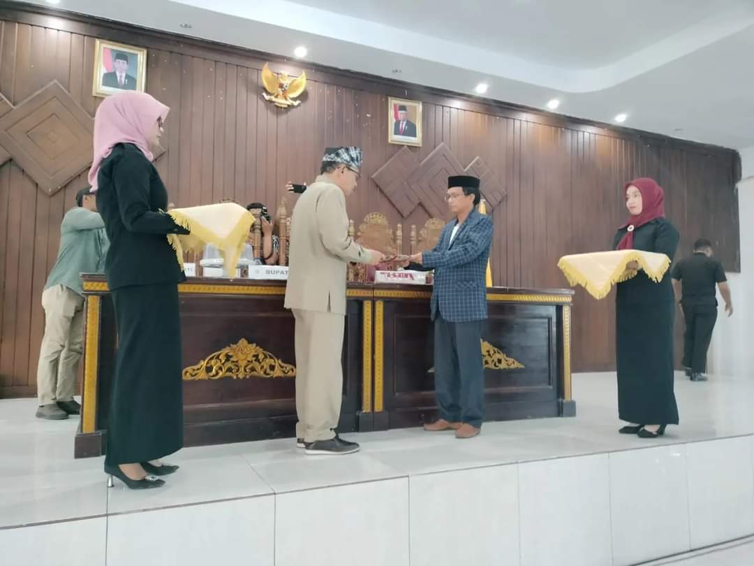LITERATURSULTRA.COM- Bupati Buton Utara, Dr. H. Muhammad Ridwan Zakariah, M. Si menyerahkan Nota Keuangan dan Raperda APBD Perubahan Tahun Anggaran 2024 Kabupaten Buton Utara kepada Wakil Ketua II DPRD, Sujono, S. Ars dalam rapat Paripurna di Ruang Sidang DPRD, Jum’at, 27 September 2024.
