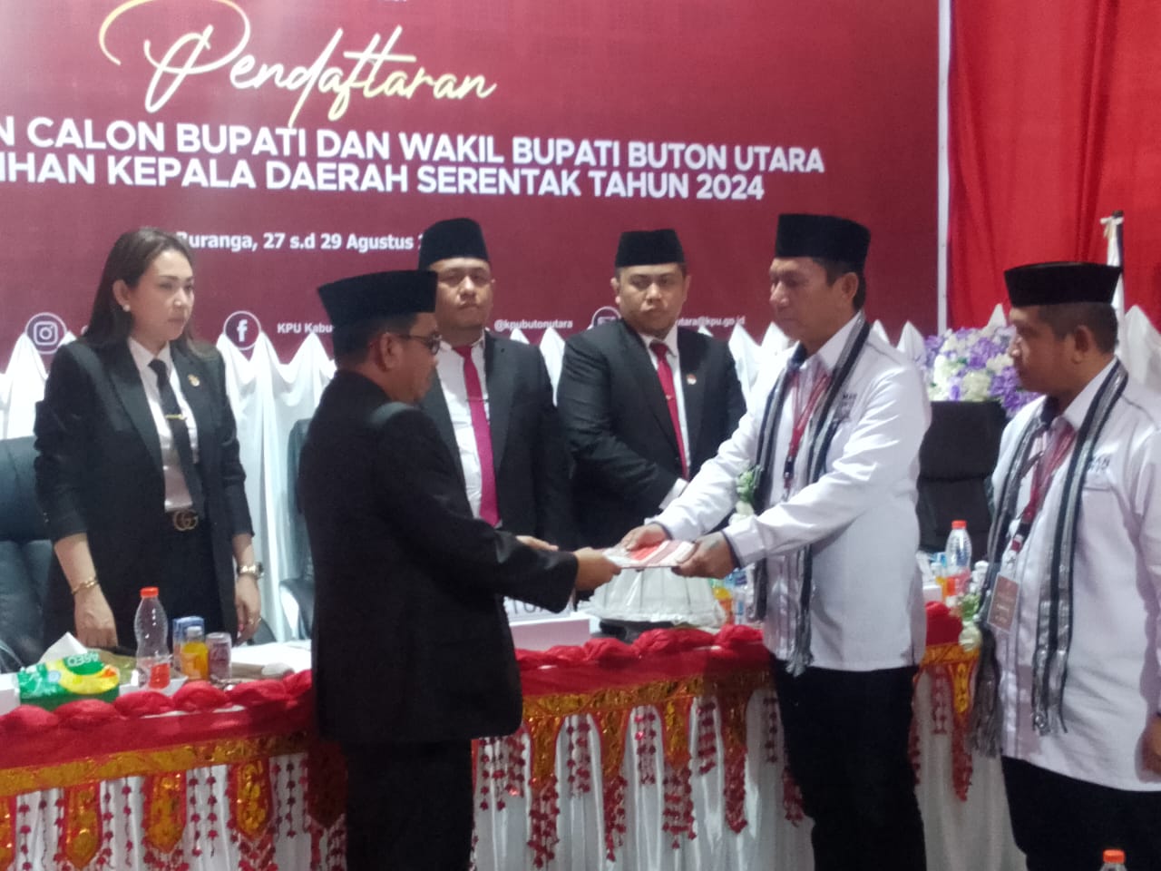 LITERATURSULTRA.COM – Dihari terakhir pendaftaran calon bupati dan wakil bupati Kabupaten Buton Utara (Butur), pasangan calon Rukman Basri Zakariah – Harwis Hari, resmi mendaftar di gedung serbaguna KPU setempat, Kamis (29/8/2024).