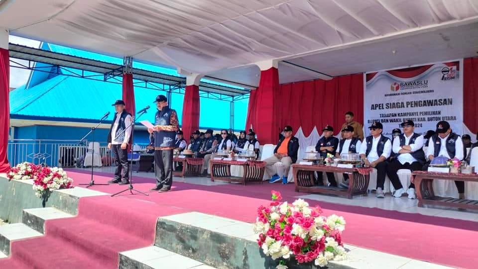 LITERATURSULTRA.COM-Tahapan Pelaksanaan Pemilihan Bupati dan Wakil Bupati Buton Utara memasuki tahapan kampanye. Bupati Buton Utara (Butur) Dr. H. Muhammad Ridwan Zakariah, M.Si., dan Wakil Bupati Butur Ahali, SH., MH., menghadiri Apel Siaga Pengawasan Tahapan Kampanye Pemilihan Bupati dan Wakil Bupati Buton Utara Tahun 2024.